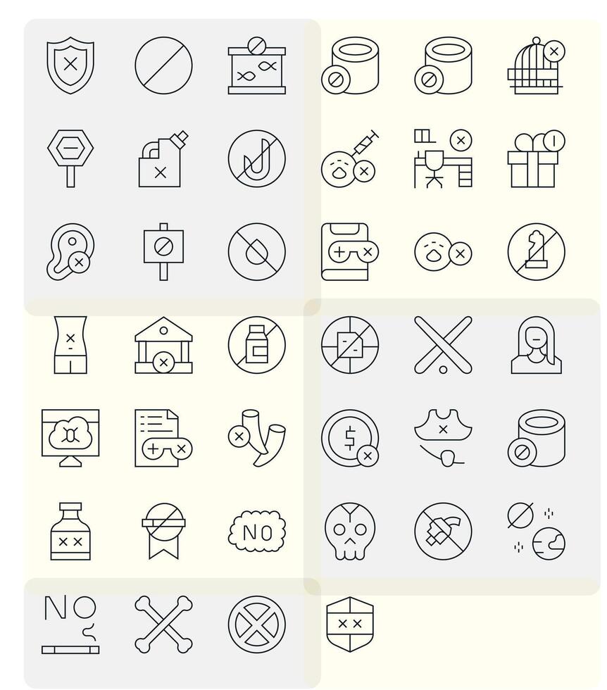 Not Allowed Essential Set including 40 PIXEL Perfect Thin Line High Resolution Icons Free Vector