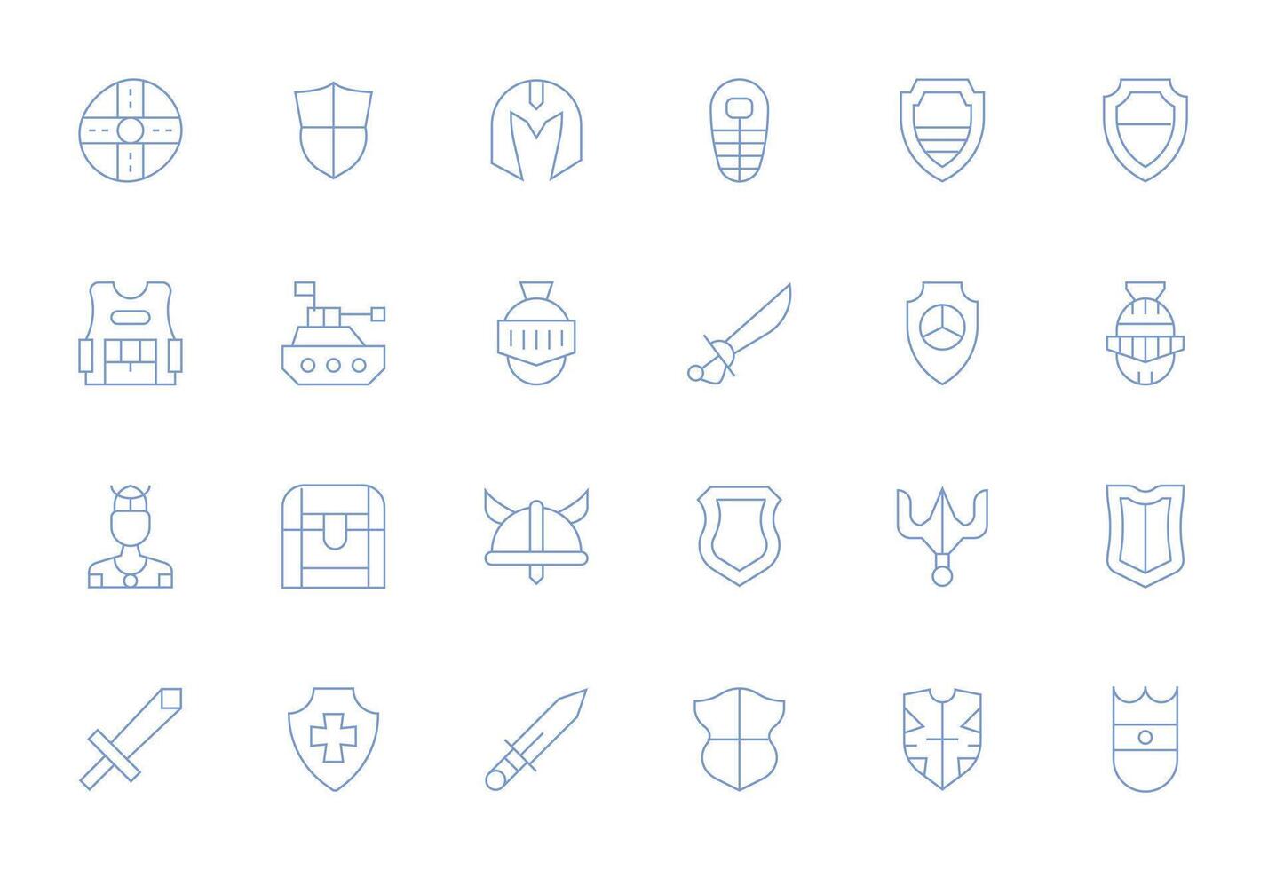 24 Grid Fitted Thin Line Icons designed for Armor Interface Free Vector