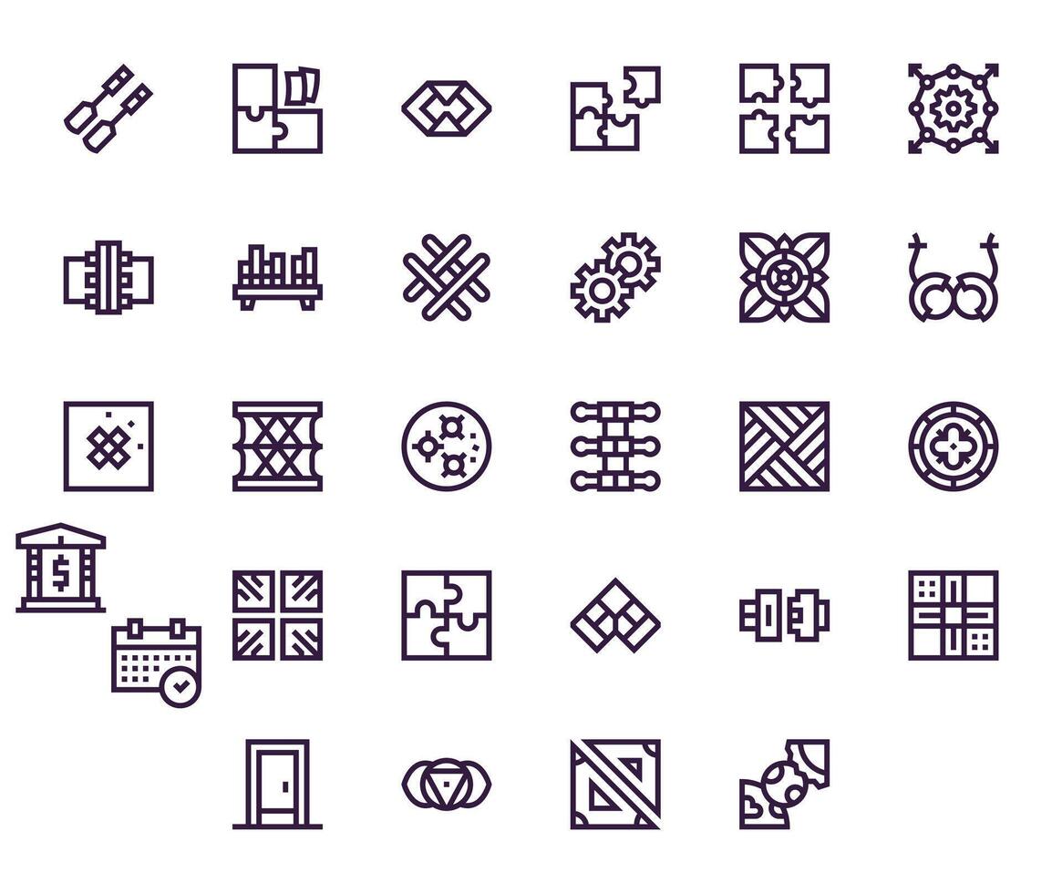28 Bold Line Icons from Interlocking in High Resolution Detail Enhanced Quality Free Vector