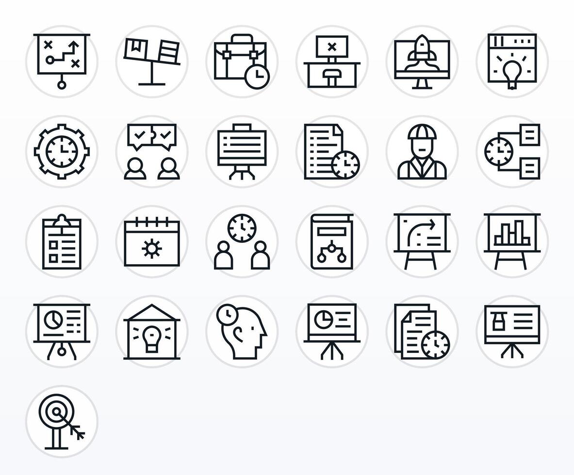25 Regular Line Grid Fitted Icons crafted for Project High Resolution applications vector