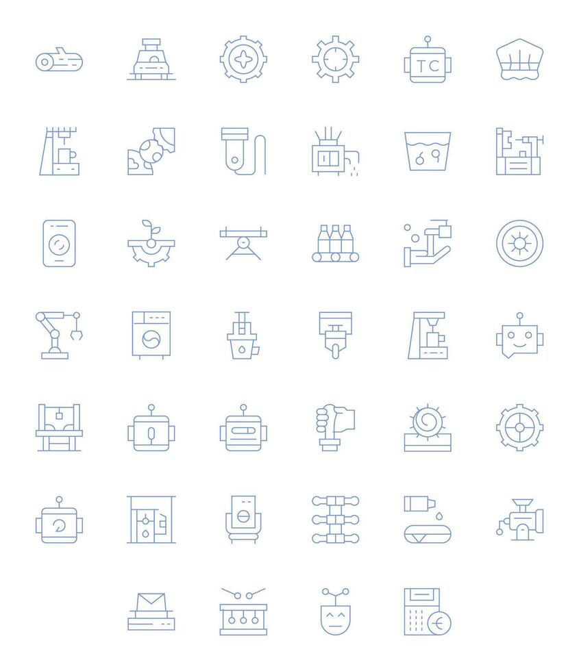 40 High Resolution Icons for Machine in Pixel Optimized Thin Line Format Free Vector