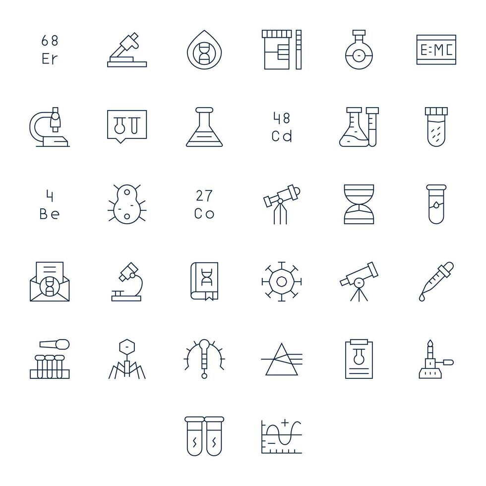 Scientific Icon Toolkit featuring 32 Pixel Optimized High Resolution Thin Line elements vector