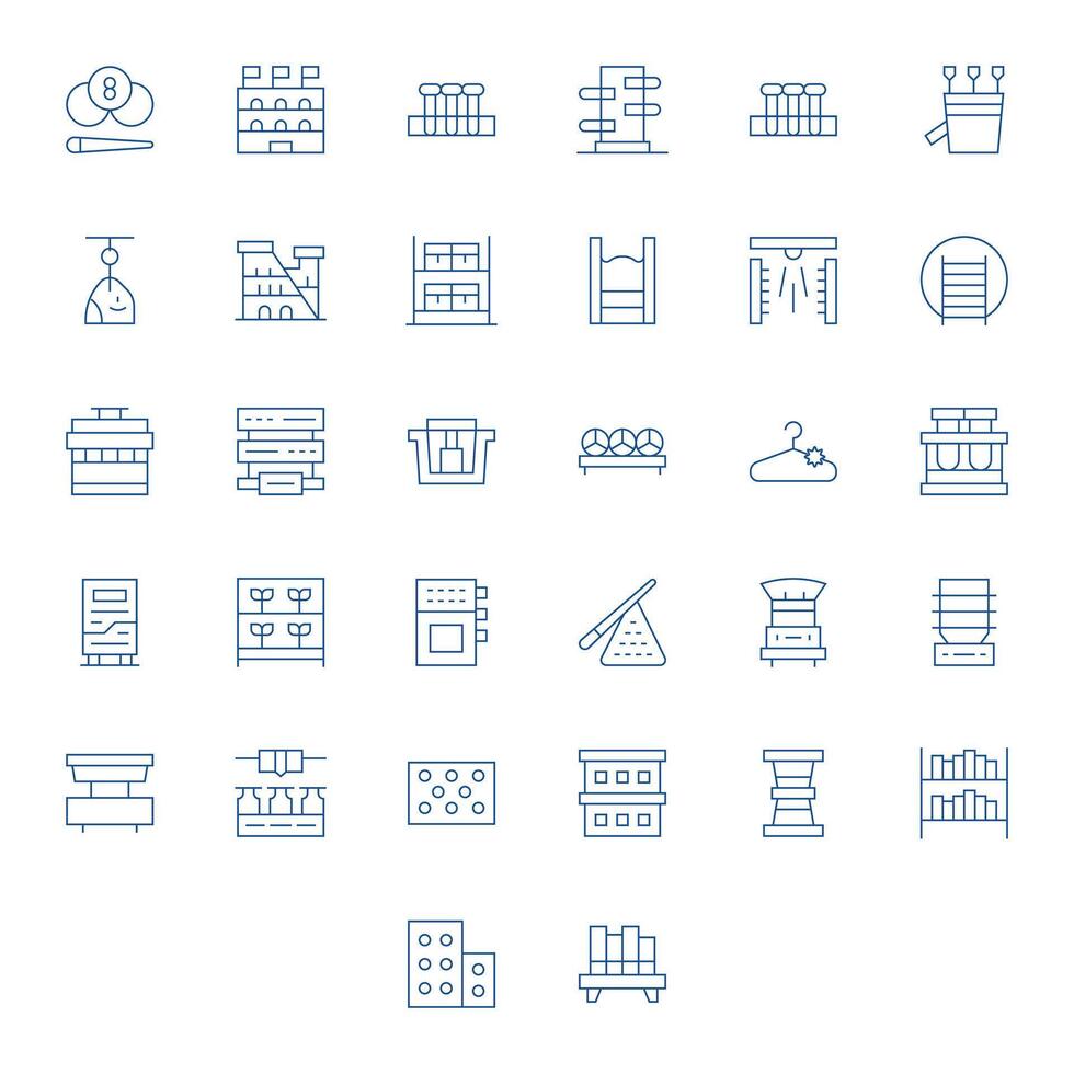 Rack Icon Set with 32 Thin Line 128x128 Grid Fitted Graphics vector