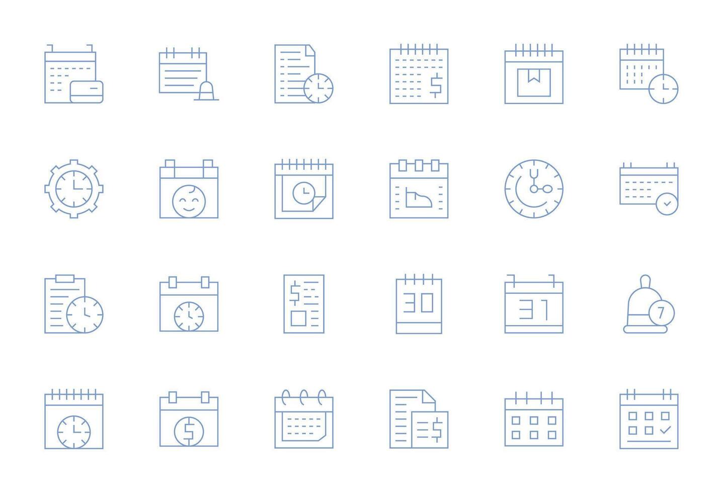 Due Date Icon Toolkit featuring 24 Display Perfect 64x64 Thin Line elements vector