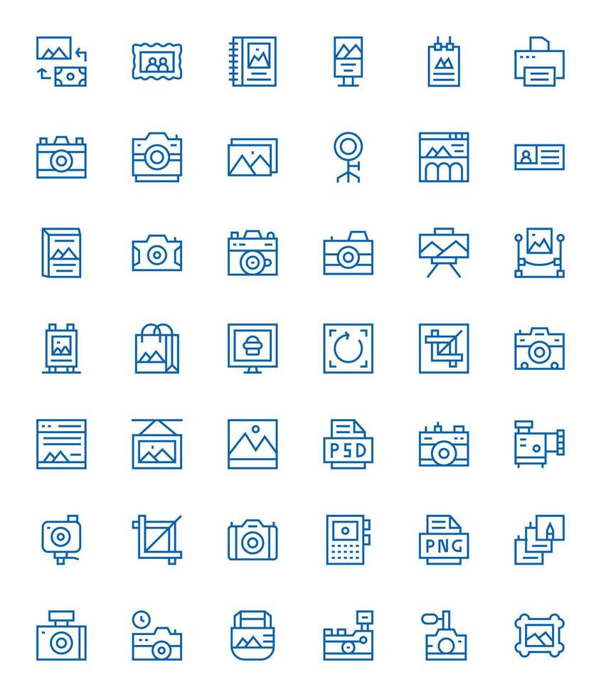 Regular Line Grid Fitted Icons from Photo Set with 42 256x256 Icons Free Vector
