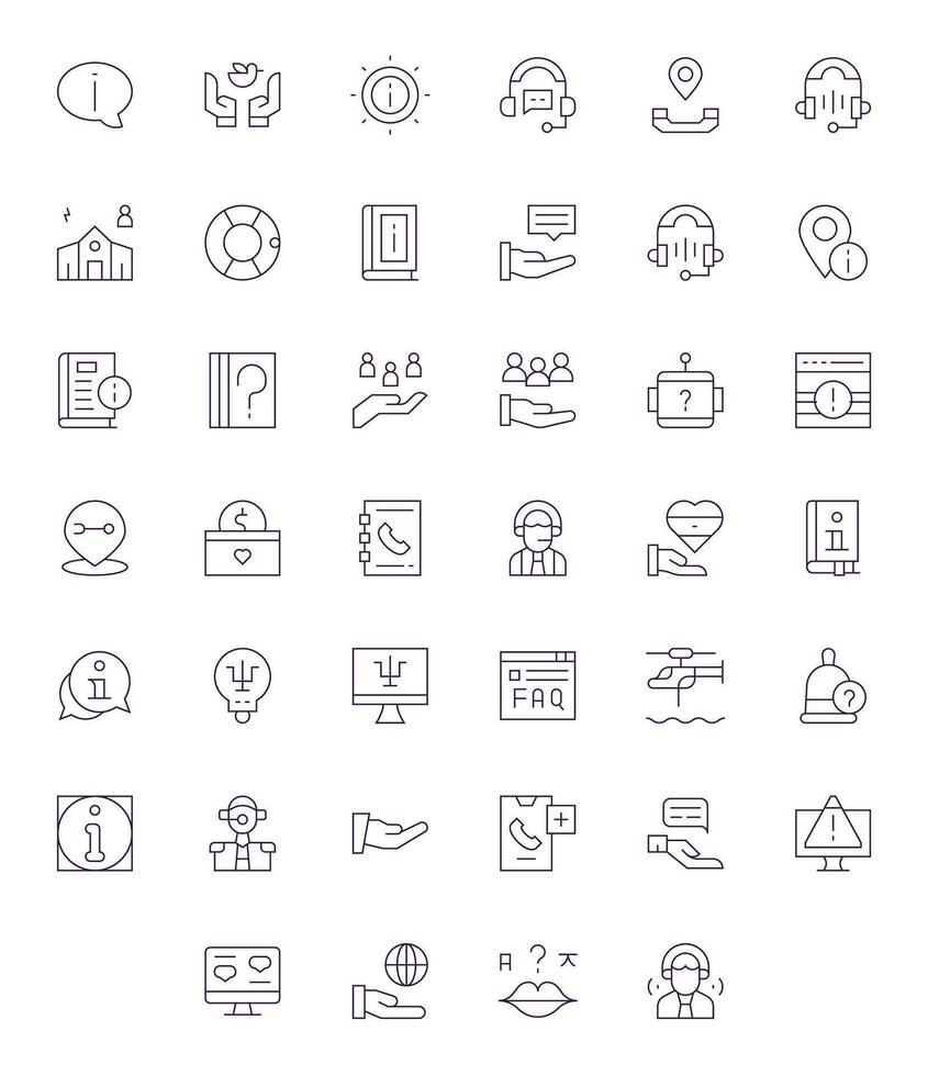 40 Pixel Optimized Thin Line Icons designed for Help Interface Free Vector