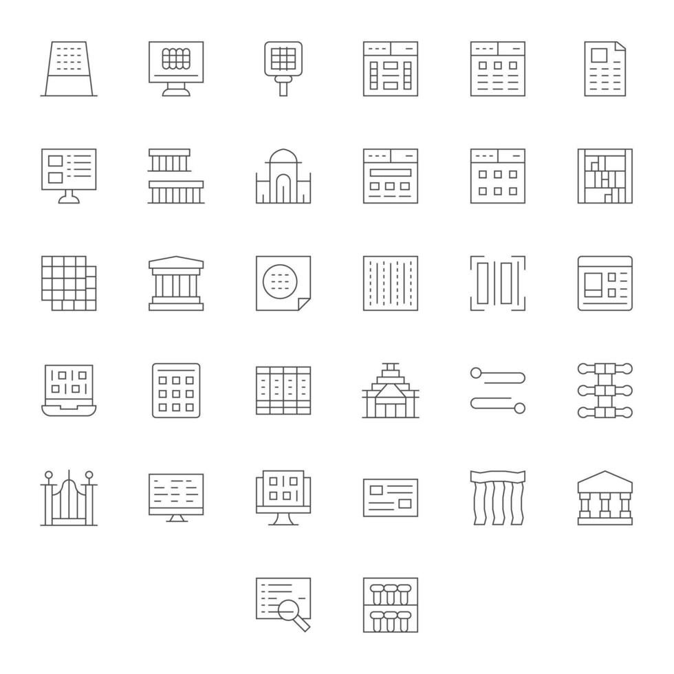32 Thin Line Icons from Columns in 128x128 Editable Quality vector
