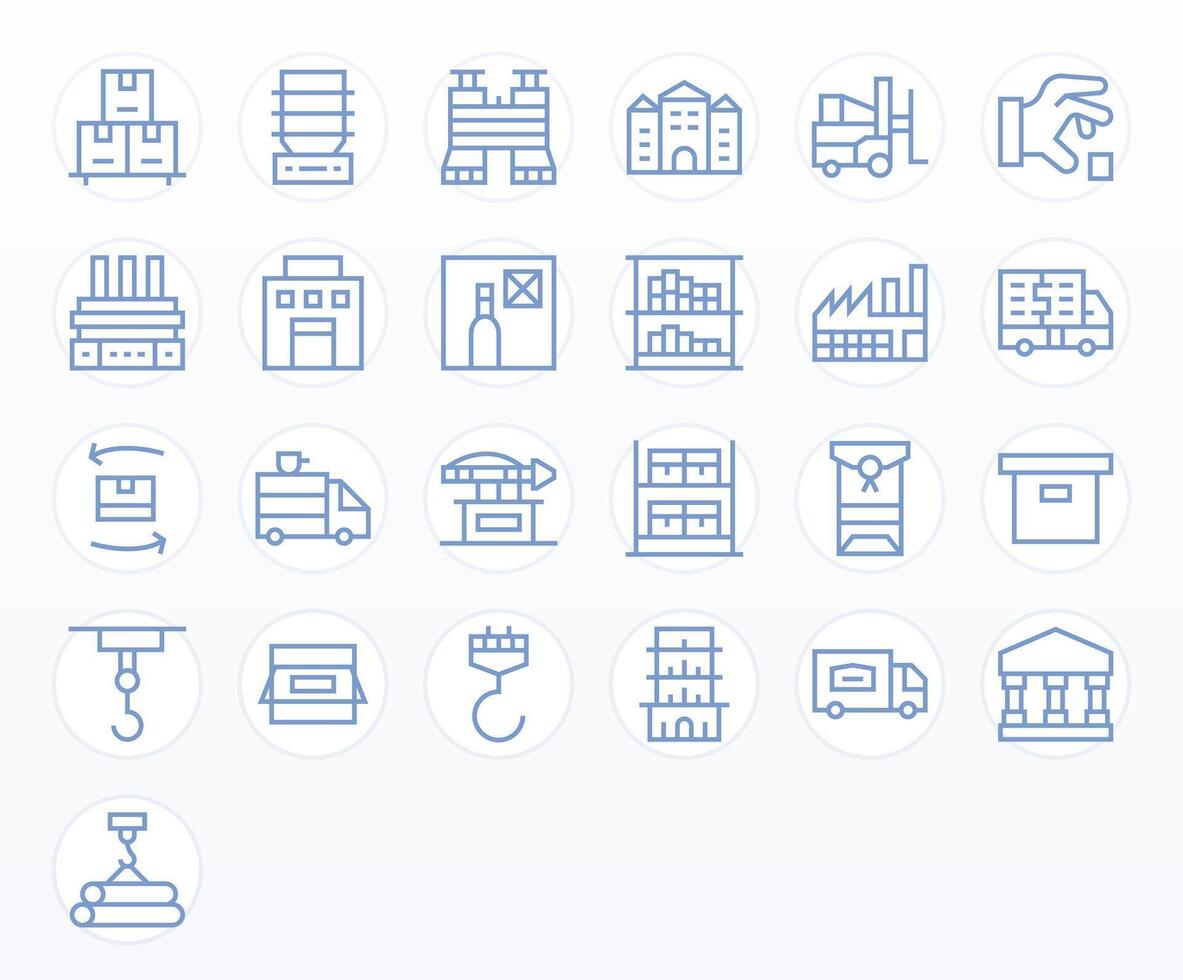 25 Regular Line Pixel Aligned High Resolution Icons from Warehouse Suite vector