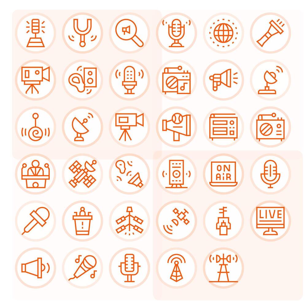 Broadcast Display Perfect Set with 35 High Resolution Regular Line Icons Free Vector