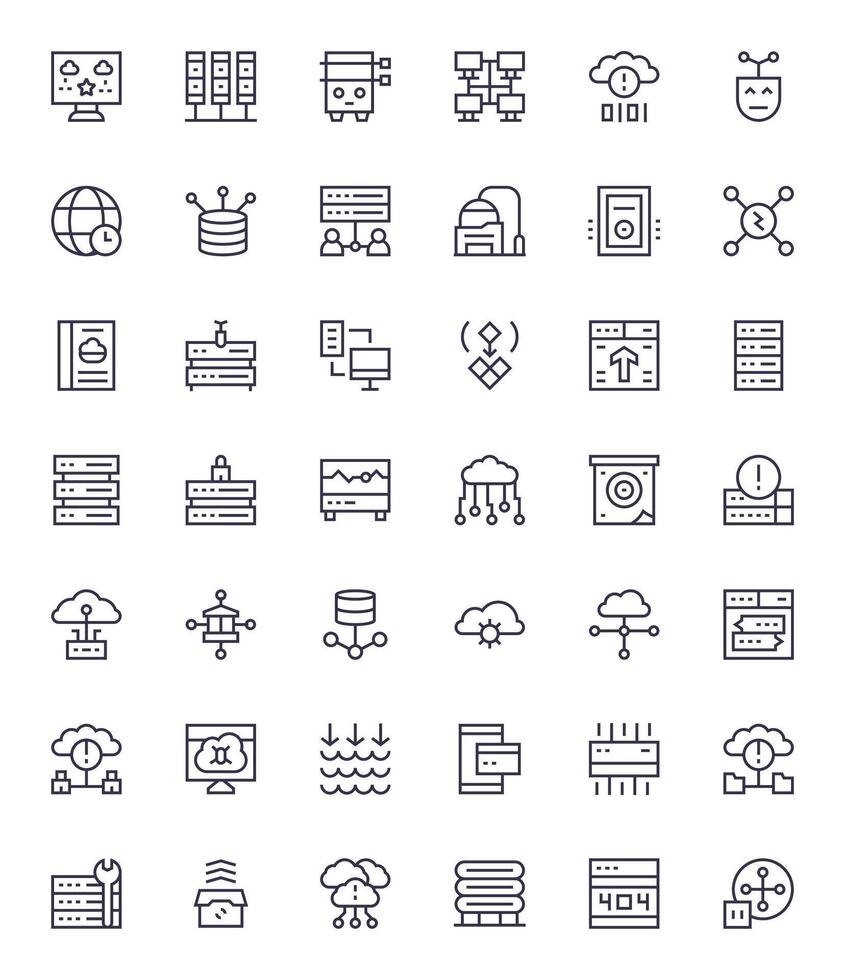 42 64x64 Regular Line Icons for Server with Grid Fitted precision vector
