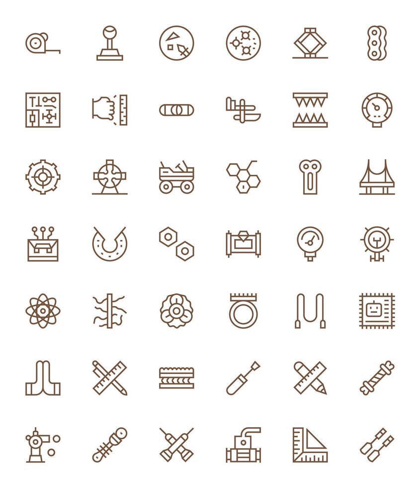 42 Regular Line Display Perfect Icons for Engineering Graphics Free Vector