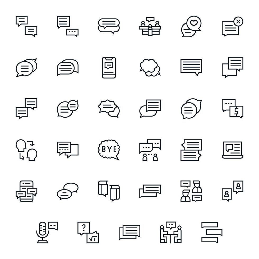 35 Grid Fitted High Resolution Icons for Conversation in elegant Regular Line design Free Vector