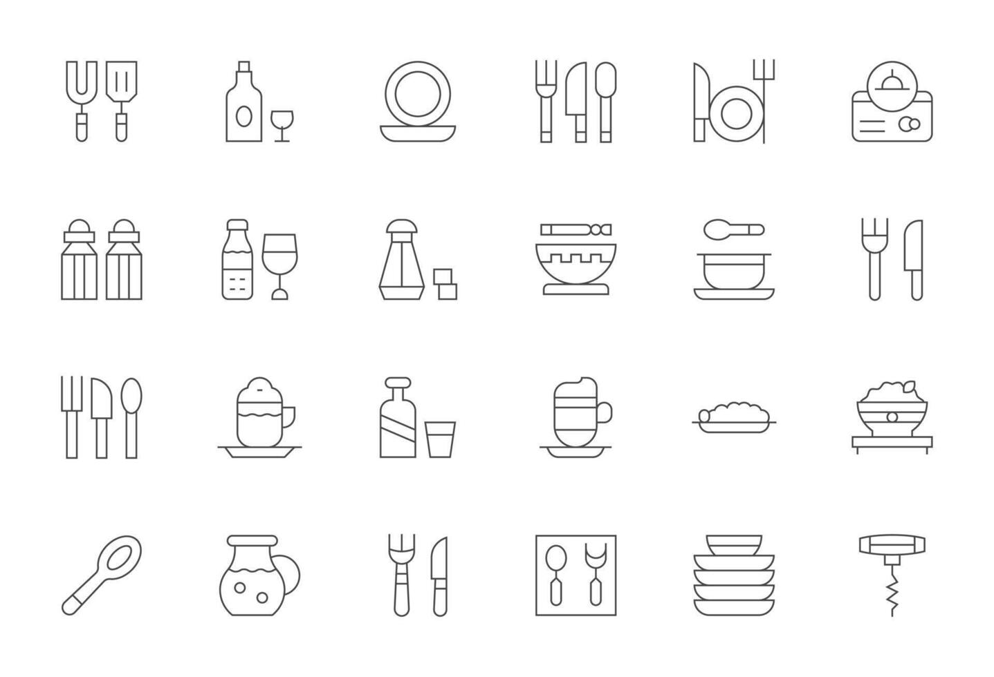 24 256x256 Thin Line Display Perfect Icons for Tableware Projects vector