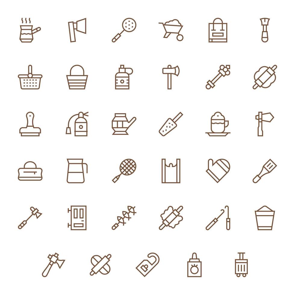 Handle 64x64 Icon Pack with 35 Regular Line Pixel Optimized Elements Free Vector