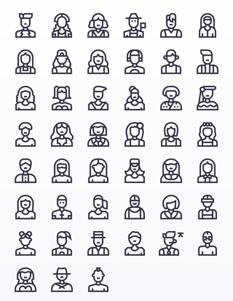 45 Icons for Avatar optimized in Display Perfect 256x256 Bold Line resolution Free Vector