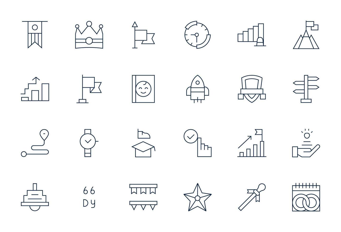 Milestone Scalable Set featuring 24 Display Perfect Thin Line High Resolution Icons Free Vector
