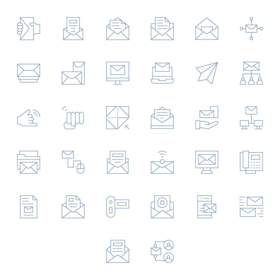 Send Icon Set with 32 Thin Line 128x128 Grid Fitted Graphics Free Vector