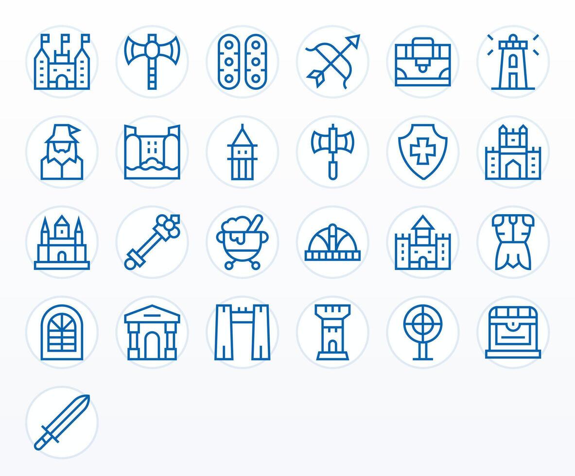 Medieval Icon Set with 25 Regular Line Retina Ready Pixel Aligned Graphics vector