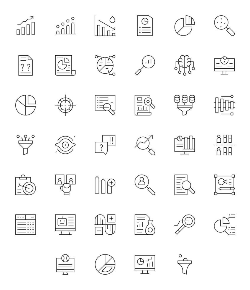 Data Analysis Ultimate Package with 40 128x128 Thin Line Pixel Optimized Icons Free Vector