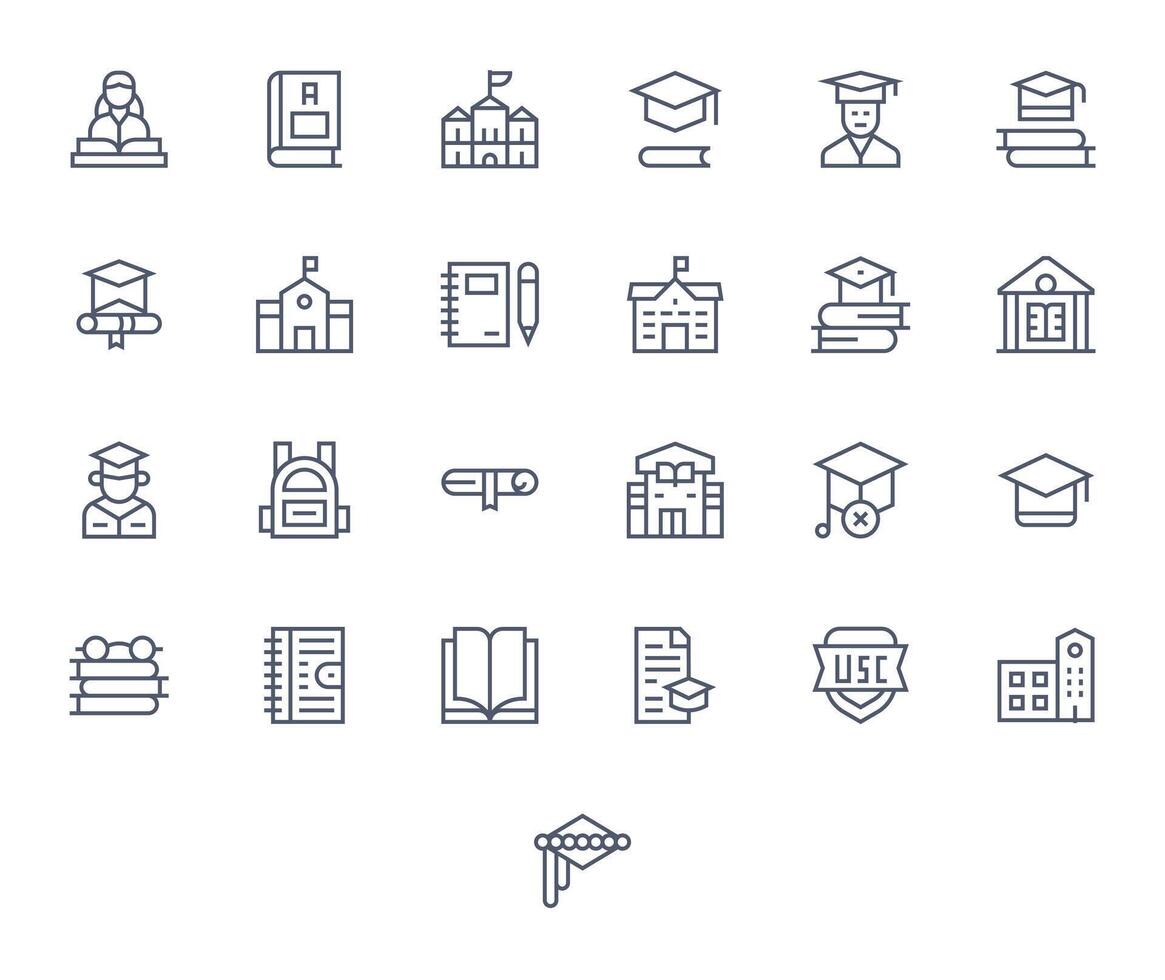 25 Icons for College optimized in Grid Fitted 128x128 Regular Line resolution vector
