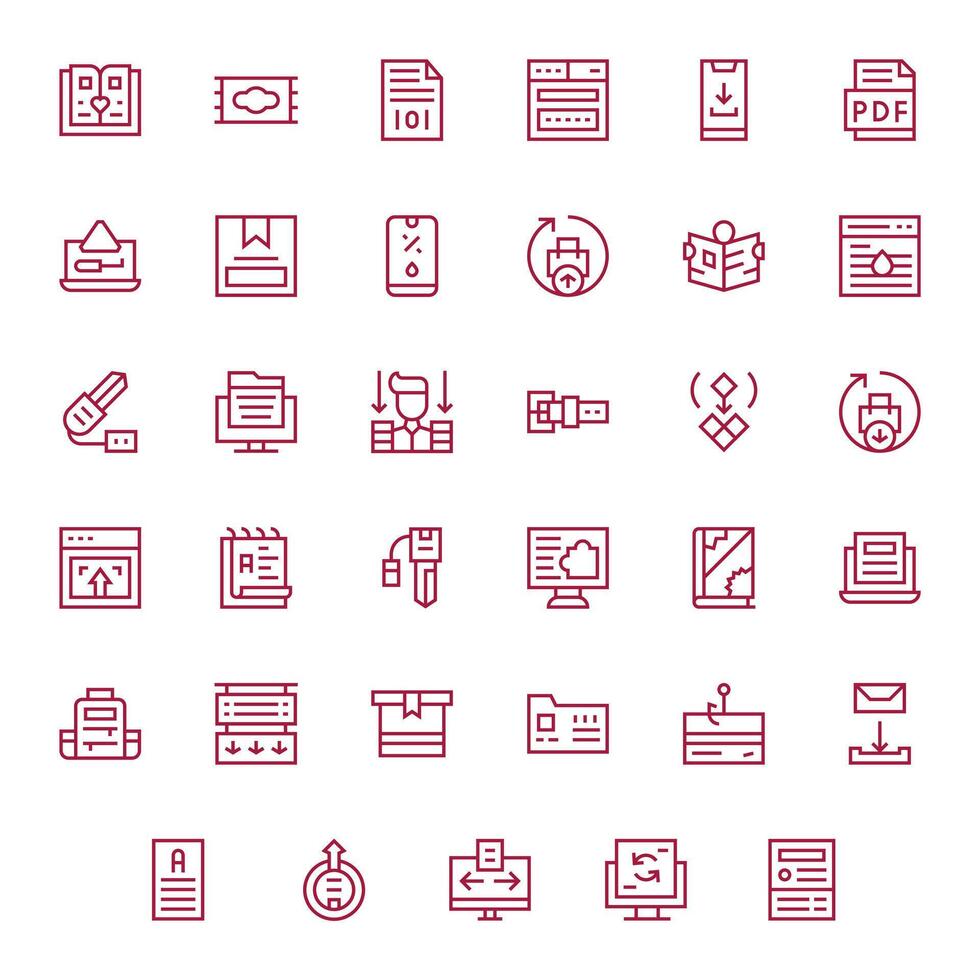 Digital File Scalable Set featuring 35 Display Perfect Regular Line 64x64 Icons Free Vector