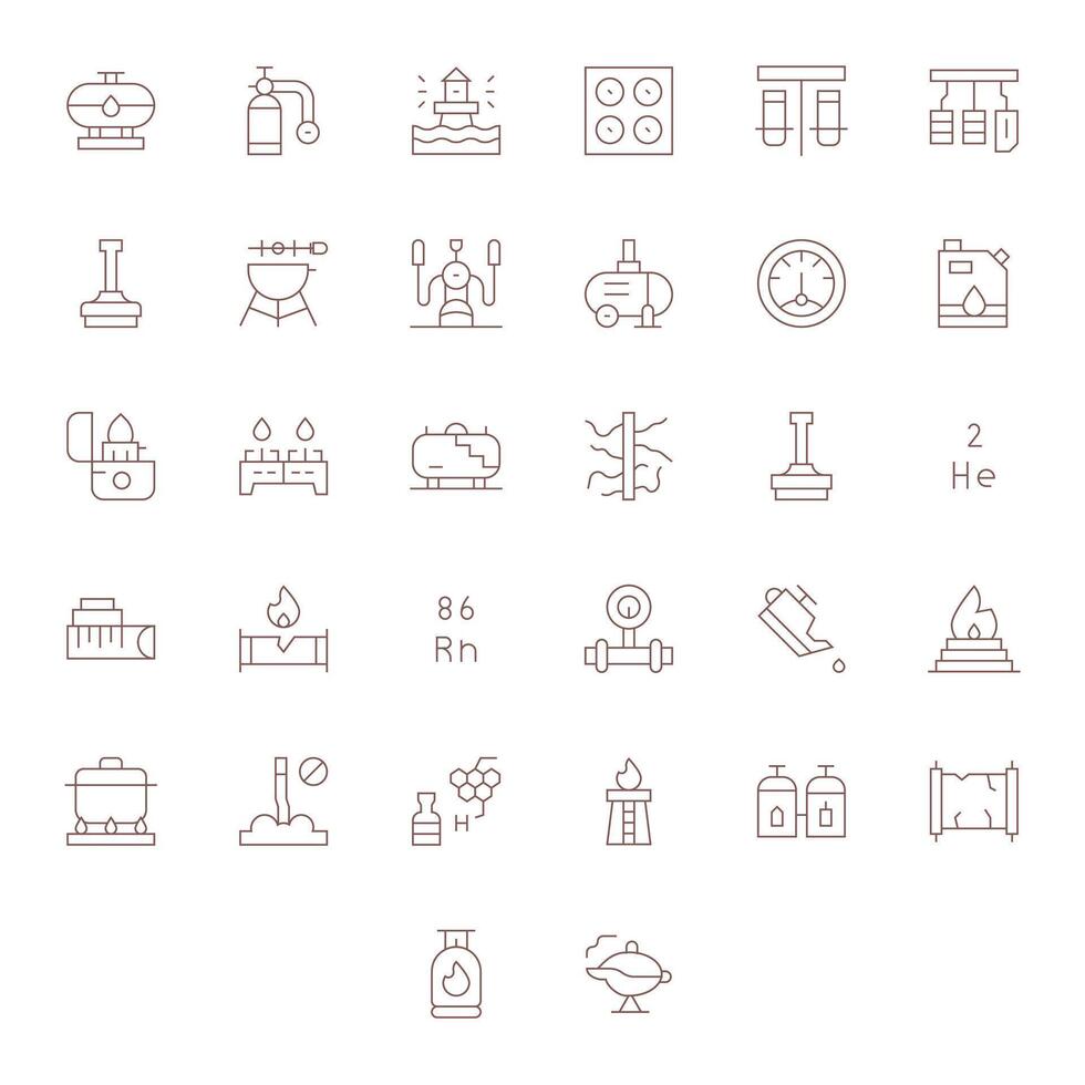 Gas 256x256 Icon Pack with 32 Thin Line Pixel Optimized Elements vector
