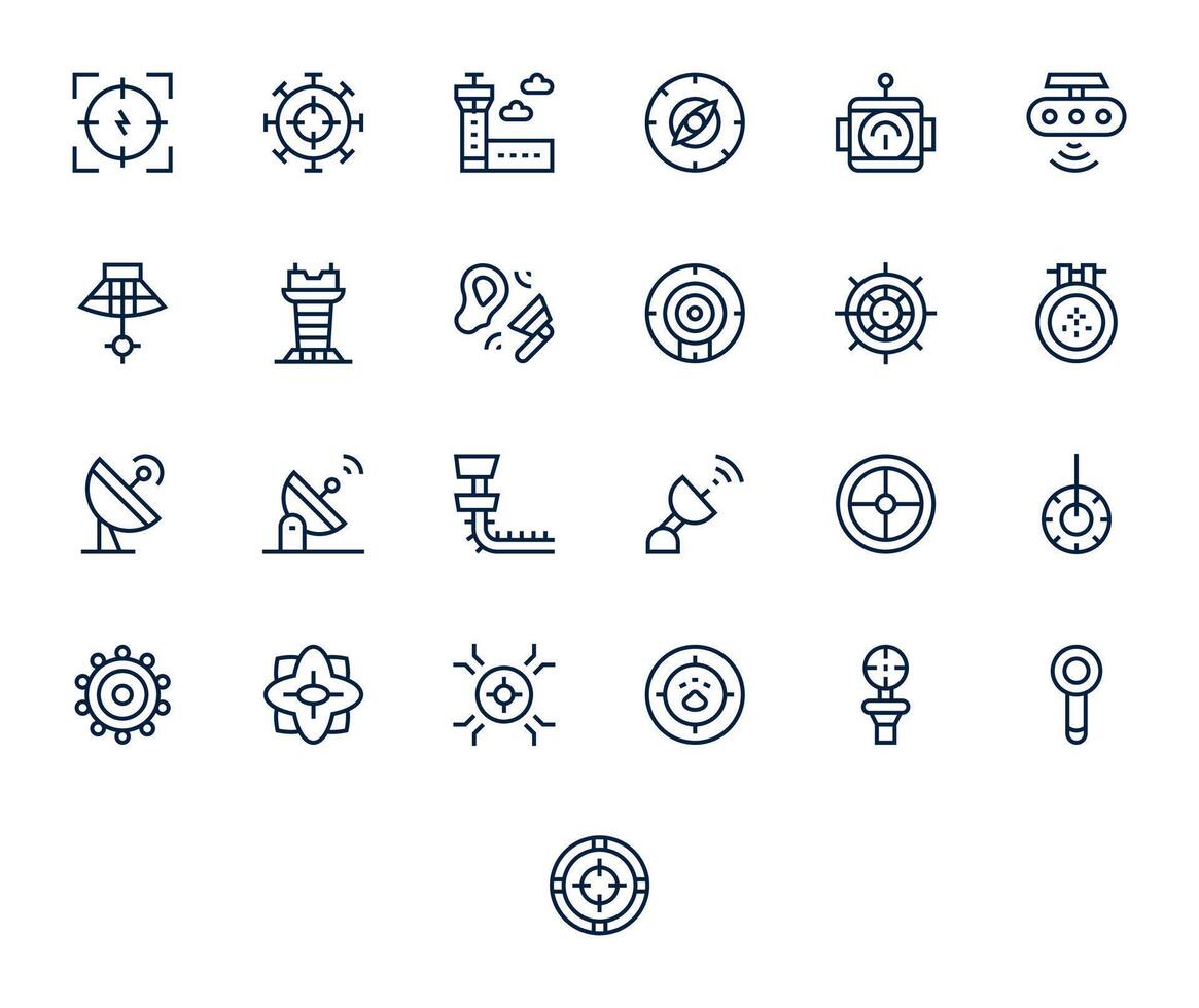25 Pixel Optimized Regular Line Icons designed for Radar Interface vector