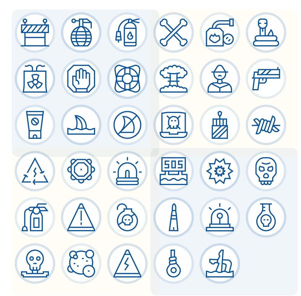 Danger Scalable Set featuring 35 Pixel Aligned Regular Line High Resolution Icons vector