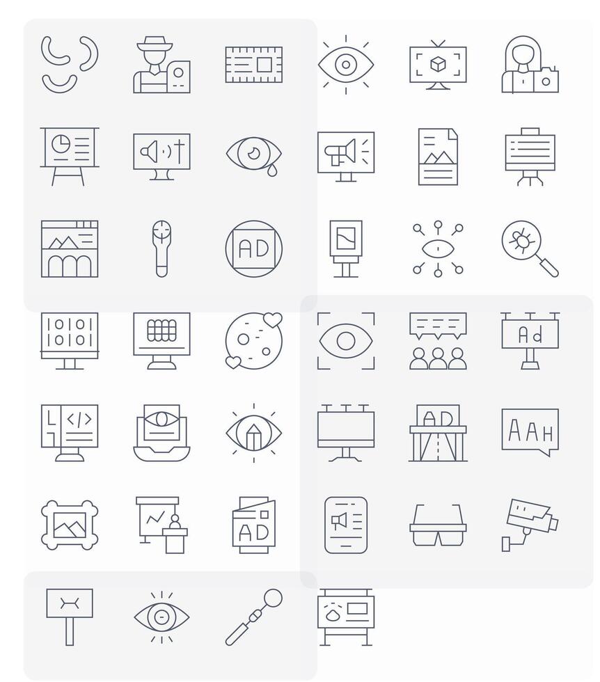 40 Thin Line Icons designed for Visual in 64x64 Pixel Aligned format Free Vector