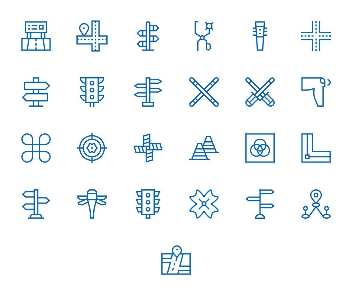 Intersection Professional Set with 25 Regular Line Detail Enhanced High Resolution Icons Free Vector