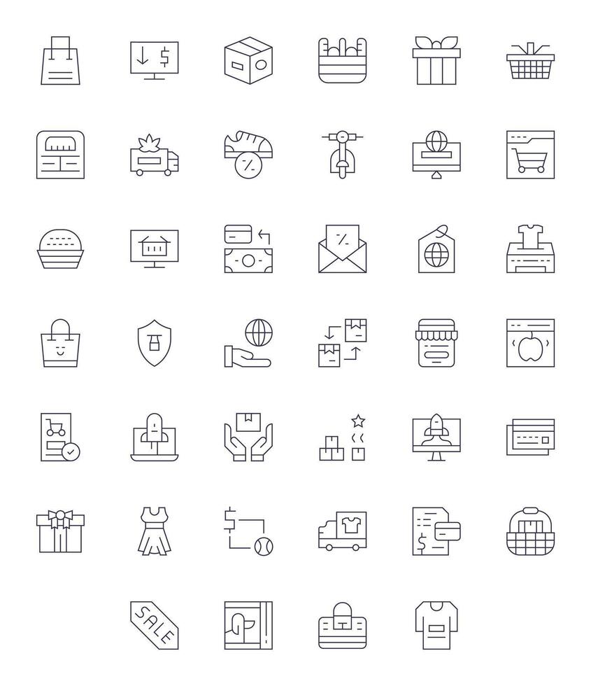 ECommerce Professional Set with 40 Thin Line Pixel Optimized High Resolution Icons Free Vector