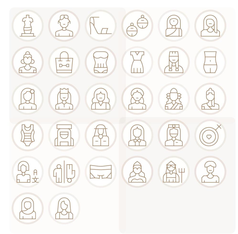 Female Graphics featuring 32 Thin Line Pixel Optimized High Resolution Designs vector