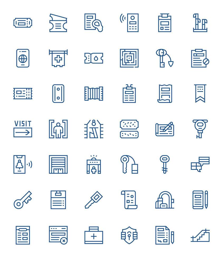 42 Grid Fitted Regular Line Icons designed for Entry Interface Free Vector