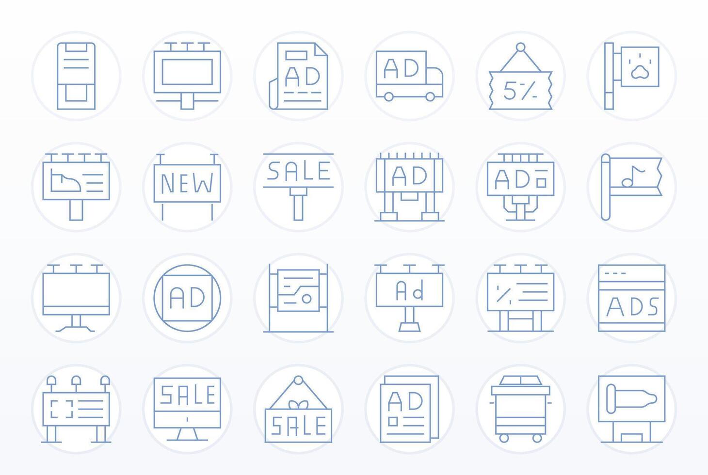 24 Icons for Advertisement optimized in Grid Fitted 256x256 Thin Line resolution vector