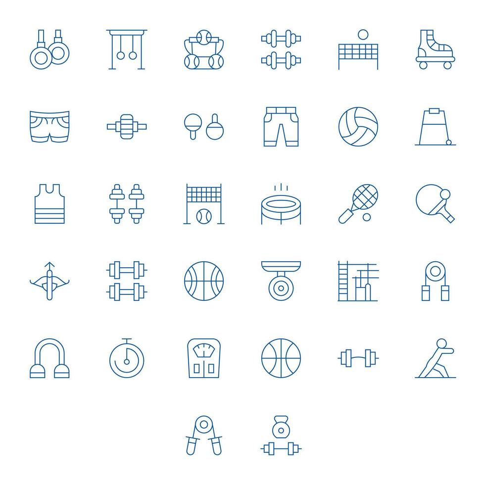 Exercise Icon Set with 32 Thin Line 64x64 Pixel Optimized Graphics vector