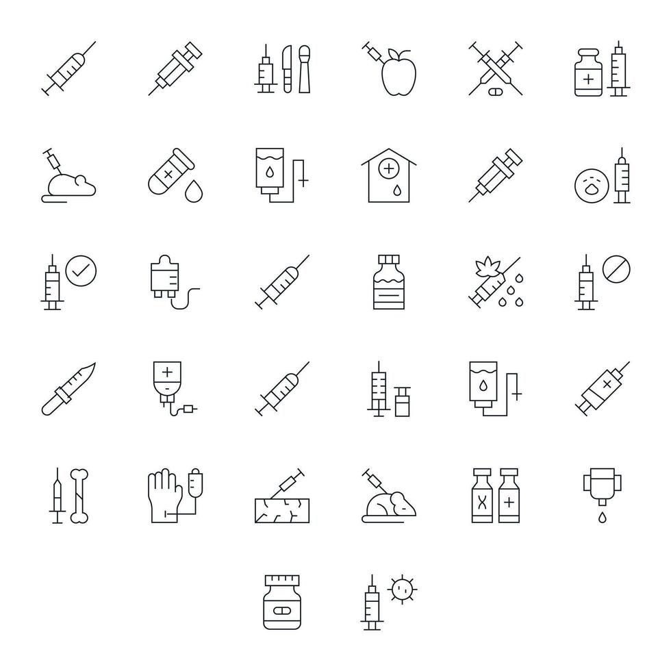 Thin Line Style Injection Icons with 32 128x128 Pixel Aligned Designs vector
