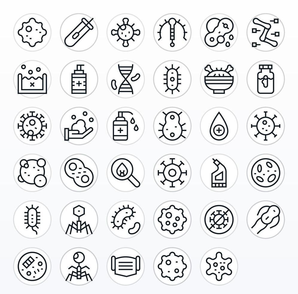 35 Regular Line Pixel Aligned Icons tailored for Bacteria 64x64 interface vector