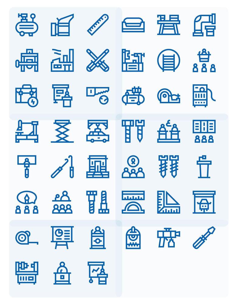 45 Pixel Aligned Icons themed around Workshop in High Resolution Bold Line format Free Vector