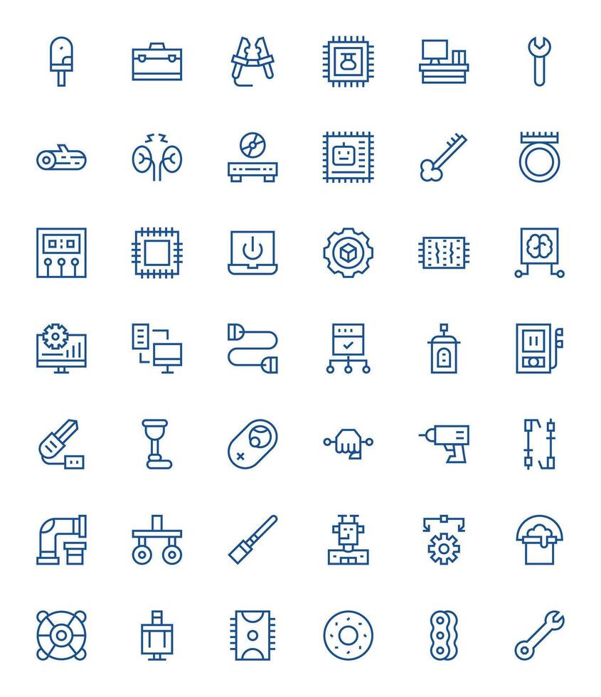 42 Icons for Hardware featuring 64x64 Editable Regular Line Graphics Free Vector