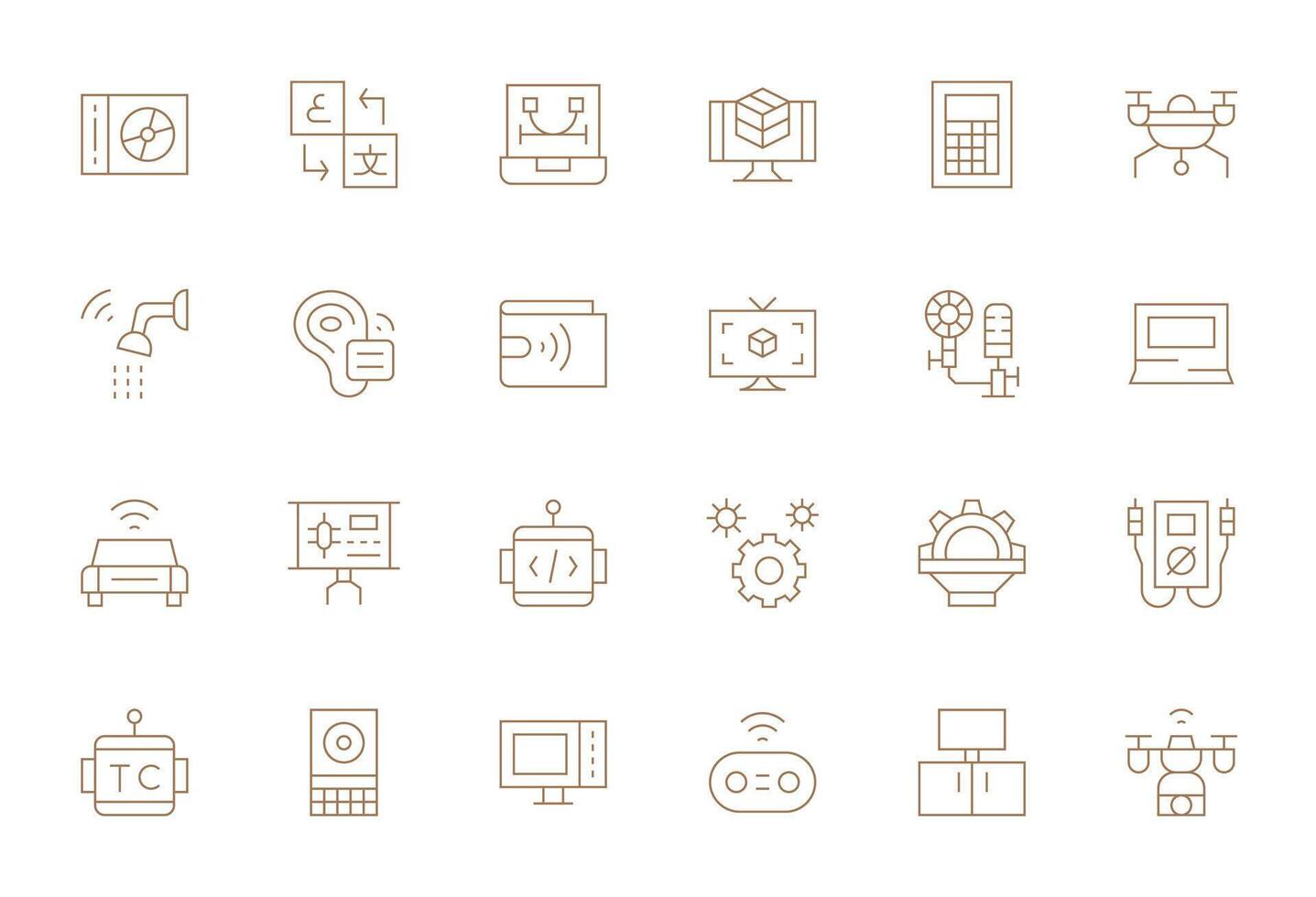 24 Thin Line Pixel Aligned Icons tailored for Tech High Resolution interface vector