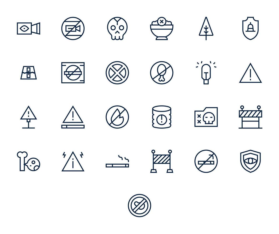Caution Visual Pack containing 25 Regular Line Pixel Optimized Icons vector