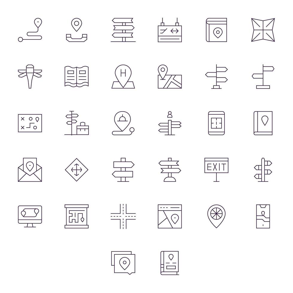 32 Thin Line Icons for Directions in crisp High Resolution Pixel Optimized resolution vector