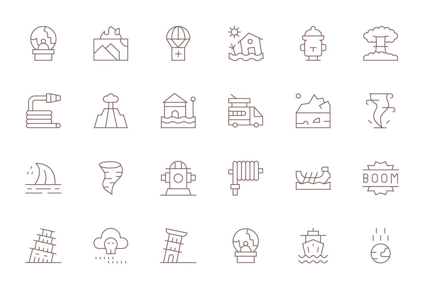 Disaster Icon Set with 24 Thin Line 256x256 Editable Graphics vector