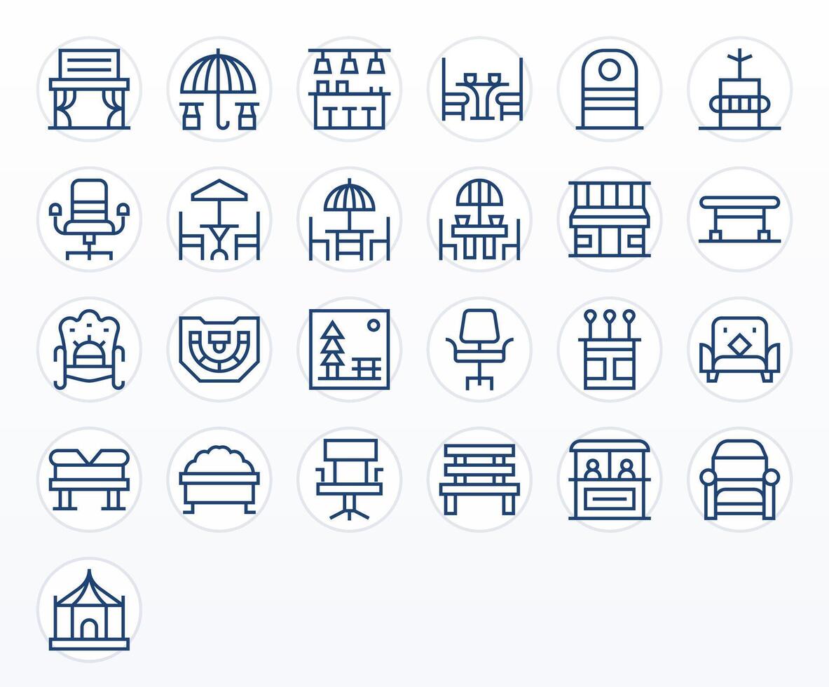 25 128x128 Regular Line Icons optimized for Seating Editable display vector