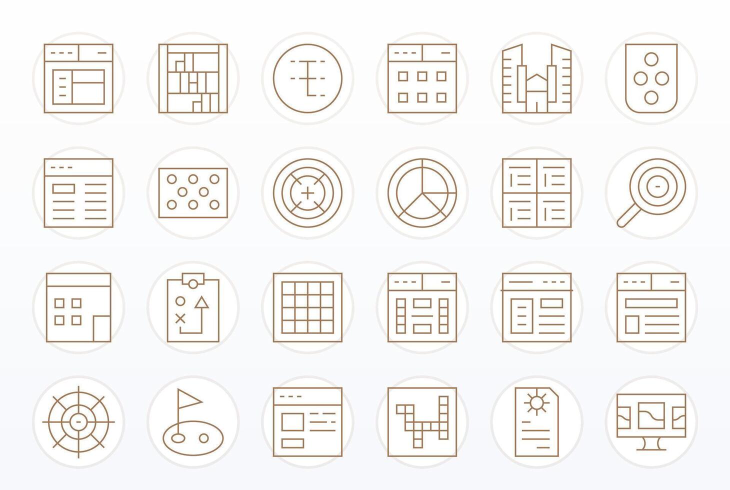 24 Thin Line Pixel Aligned Icons for Layout Graphics vector