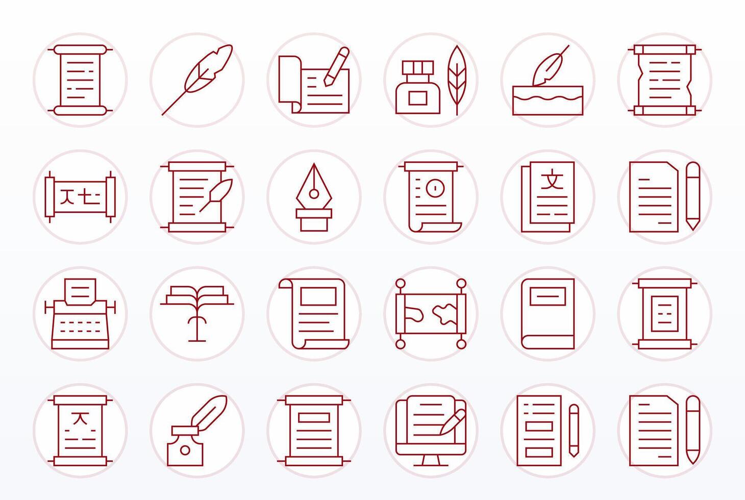 Manuscript Design Icons featuring 24 Display Perfect Thin Line Style Free Vector