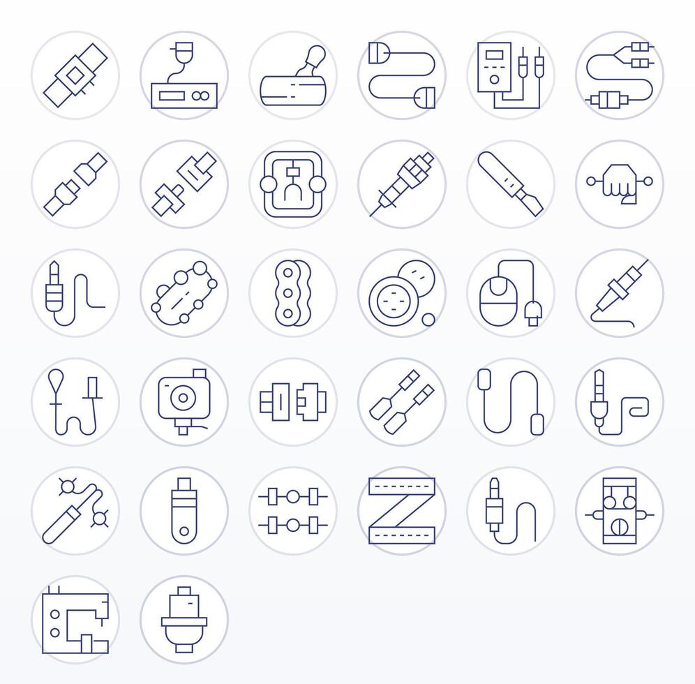 32 Thin Line Icons for Connector in crisp Retina Ready Pixel Optimized resolution vector