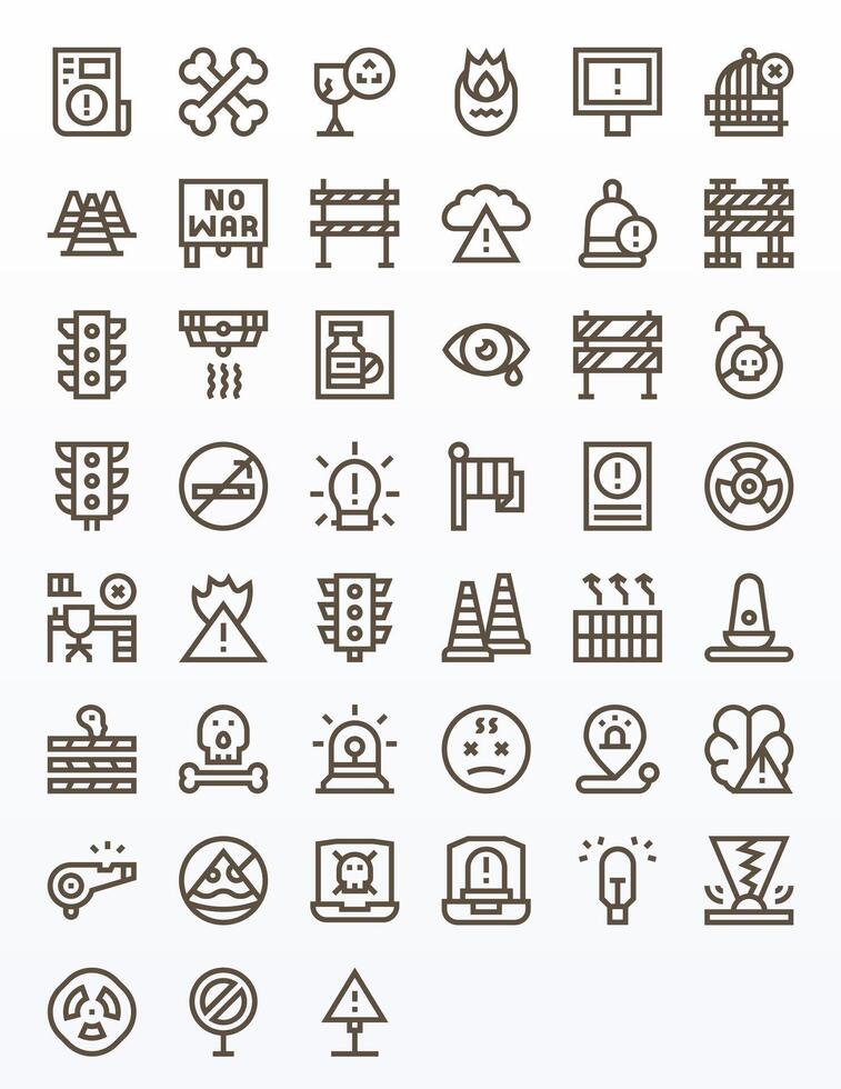 Caution 256x256 Icon Pack with 45 Bold Line Pixel Optimized Elements Free Vector