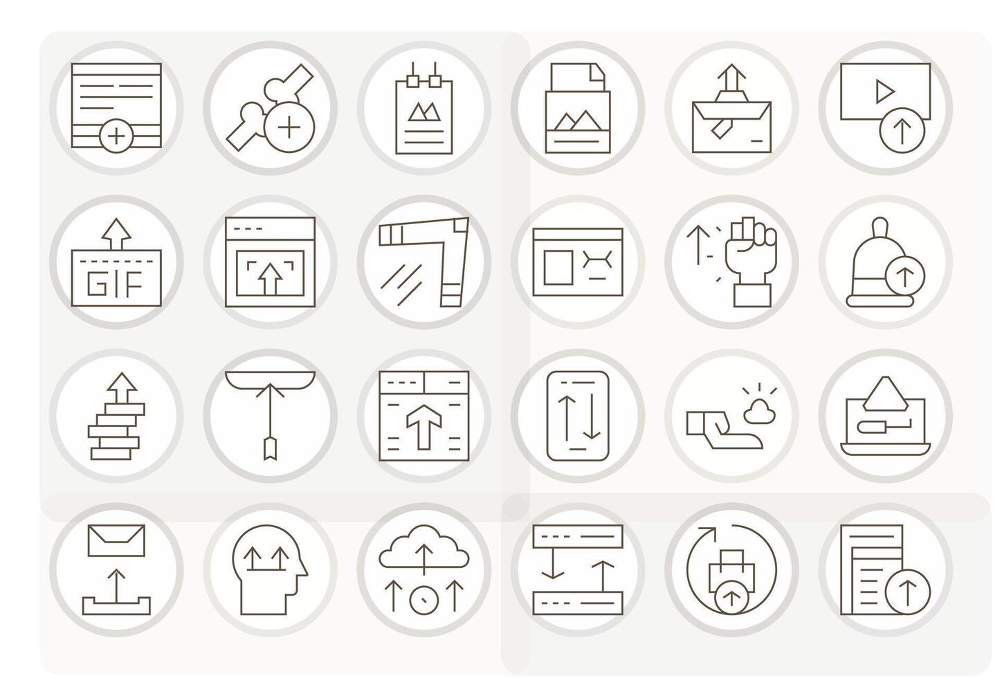 24 PIXEL Perfect 64x64 Icons for File Upload in elegant Thin Line design vector
