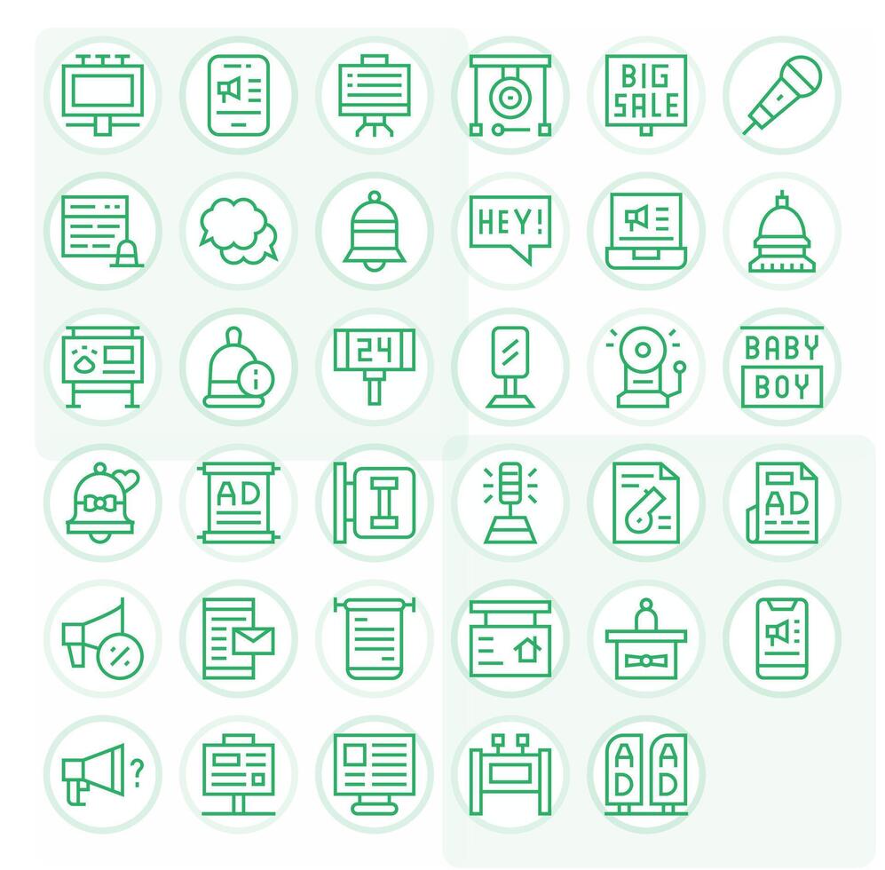 Regular Line Style Announcement Icons with 35 High Resolution Pixel Aligned Designs vector